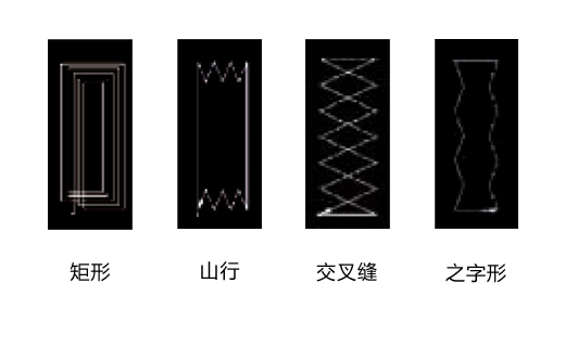 之字形:有用避免脫線,能夠在矩形或山行后利用。